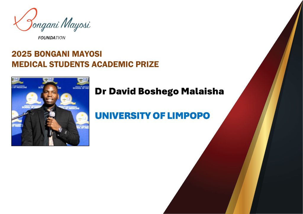 The Bongani Mayosi Student’s Academic Prize is a prestigious national award which aims to recognise final year medical students who epitomise the Academic Legendary and Altruistic life of Professor Bongani Mayosi.